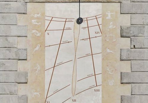 L'insieme delle curve tracciate dalla luce solare durante l'anno rappresenta il calendario, e l'area del muro interessato da questa proiezione delimita l’orologio solare, o meridiana se vogliamo.